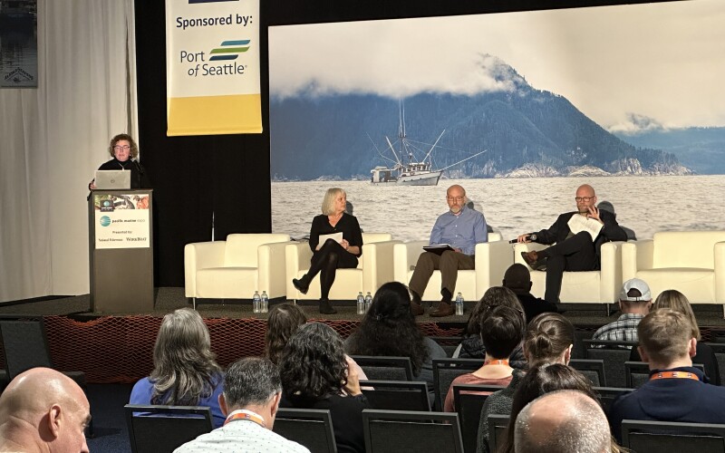 The Pacific Marine Expo kicked off its second day with an educational session, “Alaska Fisheries: Separating fact from fiction.” The panel was moderated by Kate Naughten, Director of Communications at the National Oceanic and Atmospheric Administration (NOAA). Panelists included Janet Coit, Assistant Administrator at NOAA, Robert Foy, Ph.D., Director of AK Fisheries Science Center (NOAA), and Jon Kurland, Alaska Regional Administrator (NOAA).