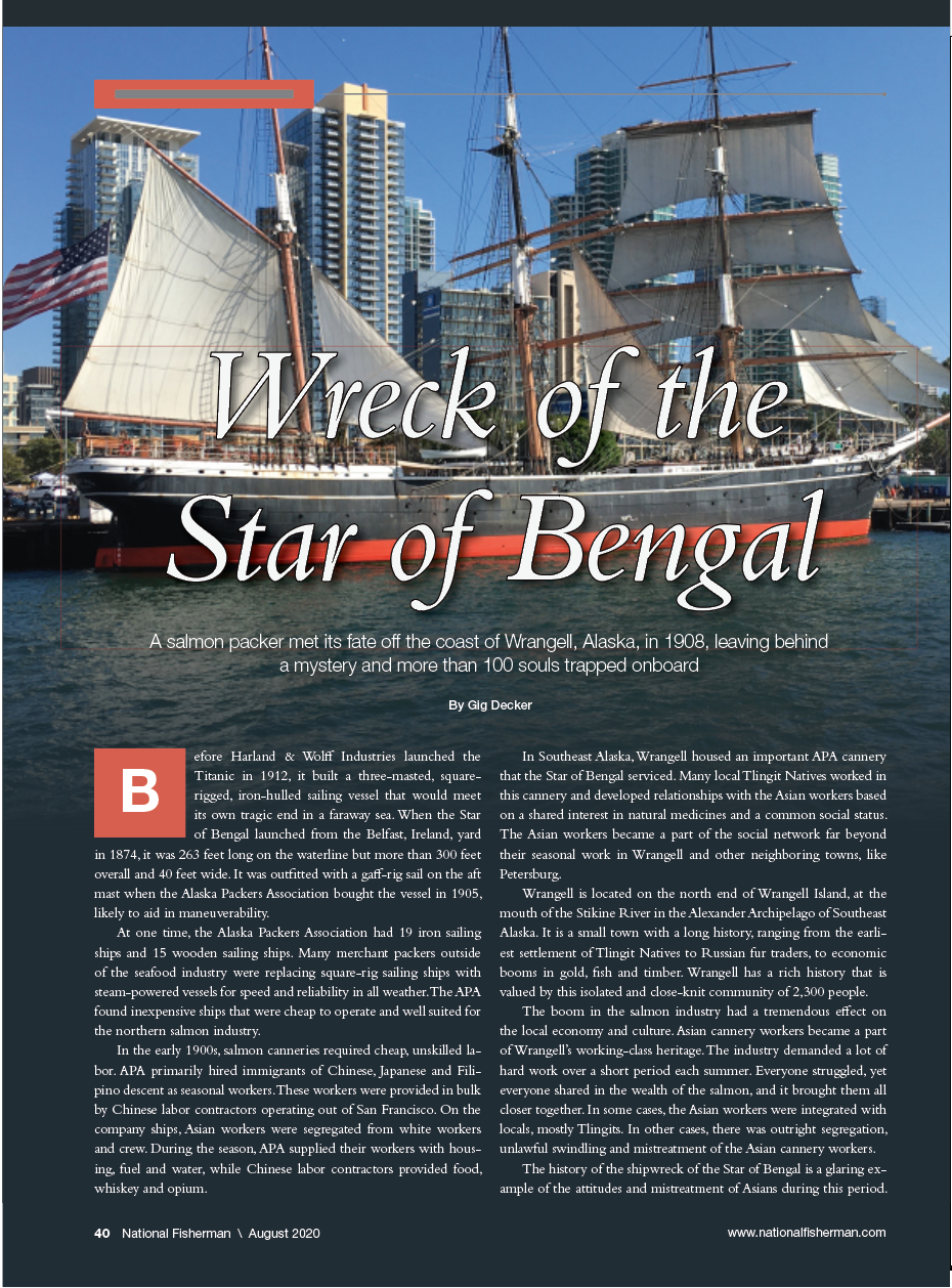 I hope to see further investigation into the shipwreck of the Star of Bengal and a monument placed here in Wrangell as a tribute to the Asian cannery workers who lost their lives on the wreck of the Star of Bengal.