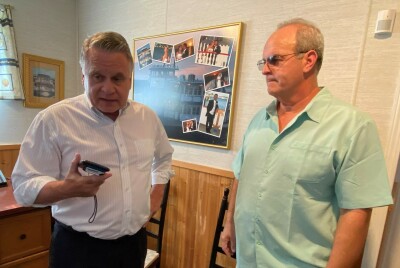 Smith also spoke with Point Pleasant Beach Mayor Paul Kanitra and Councilman Michael Ramos, who discussed their concerns about the situation’s effects on the local fishing community, as well as the challenges of keeping people off the sand bar that has resulted from the shoaling. In addition, Smith met with charter boat Capt. David Goldman of Shore Catch Guide Service, who explained how the shifting sands have changed the wave action at the mouth of the inlet making it more challenging for smaller boats to traverse the waterway during this busy time of year.