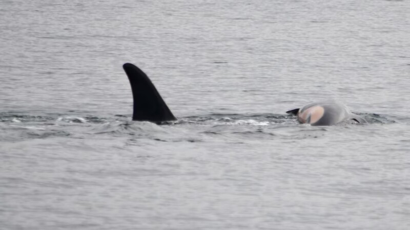 Orca known as J35 (Tahlequah) carries the carcass of her dead calf in the waters of Puget Sound off West Seattle, Wash., on Wednesday, Jan. 1, 2025. Photo courtesy of Candice Emmons/NOAA Fisheries via AP