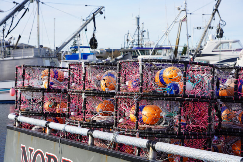 Dungeness crab pots stack on the boat. Doug Stewart photo