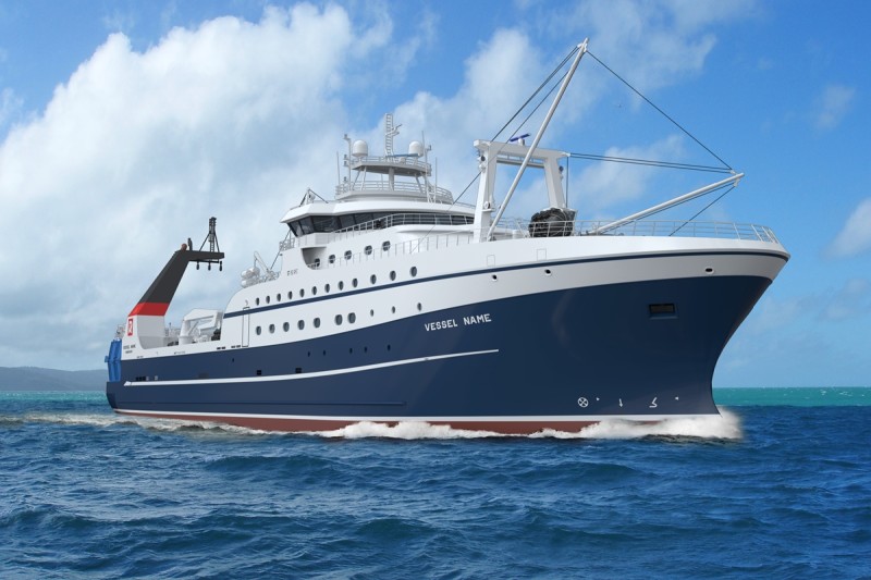 This Russian trawler coming out of the Tersan yard in 2019 is powered by an 11,000-hp MAN V-14 diesel and turn a 14-foot-diameter propeller. Tersan Shipyard photo.