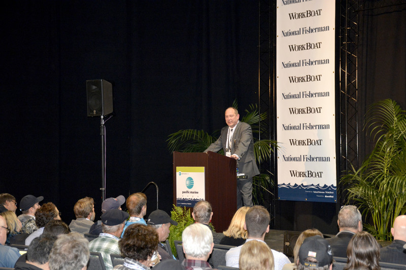 NMFS Director Chris Oliver speaking at Pacific Marine Expo in November 2017. Doug Stewart photo.