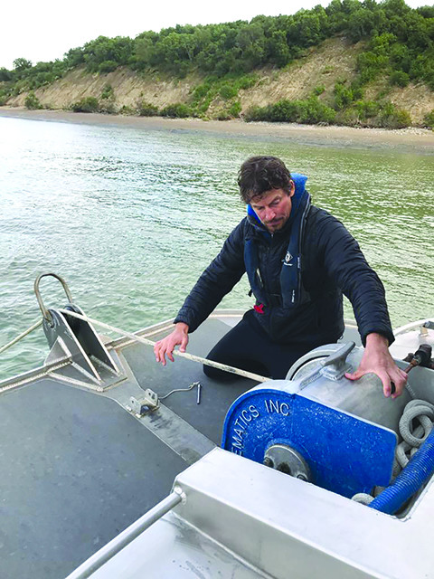Crew member of F/V Icy Bay wearing the FirstWatch 38 Pro PFD. Bristol Bay Reserve photo.