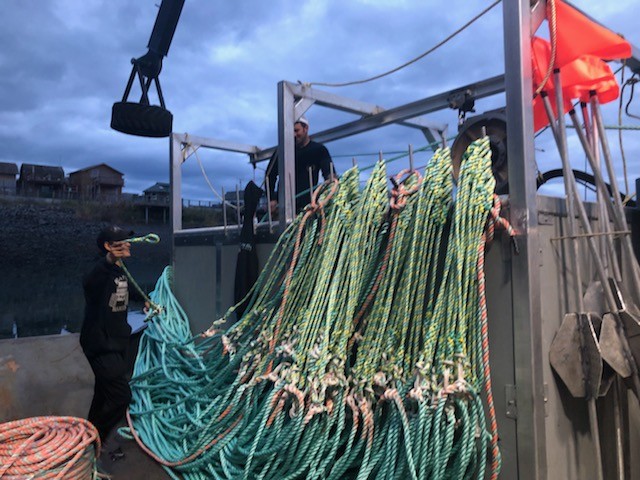 Magic Fish Co. crew prepping longline pot gear in Homer, Alaska. Buck Laukitis photo