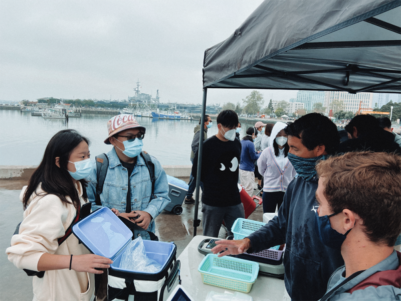 Live spot prawn sales at Tuna Harbor Dockside Market, California. Photo by Jordyn Kastlunder
