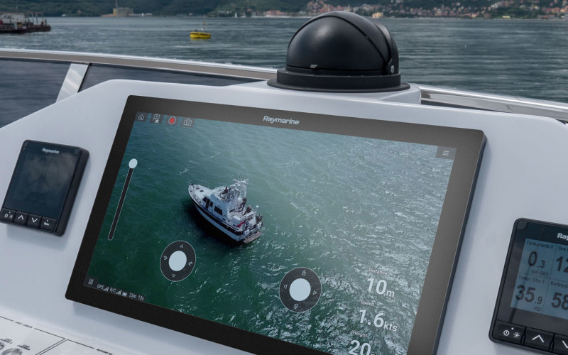 The Axiom drone-enabled system by Raymarine has an optional big screen to give you a birds-eye view larger than with a smartphone.