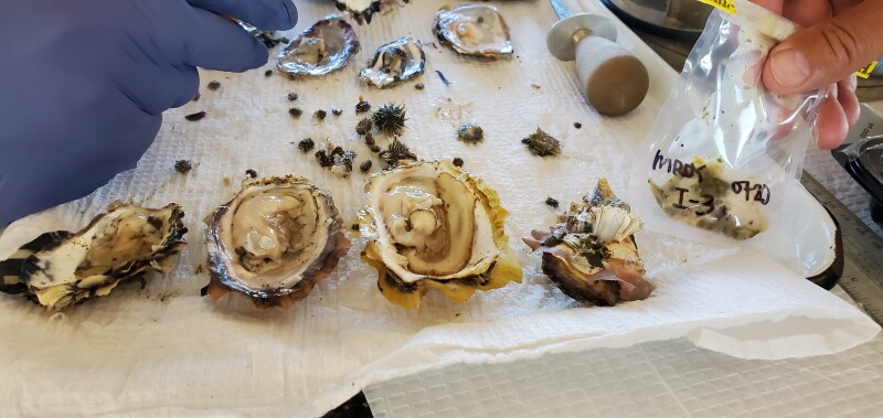Farmed oysters with PONV1. University of British Columbia photo by Amy Chan.