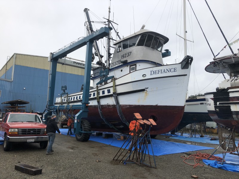 The Blue Pacific was hauled at Zerlang & Zerlang Marine Services, where David Peterson worked on her deck and fish hold. Zerlang & Zerlang Marine Services photo.