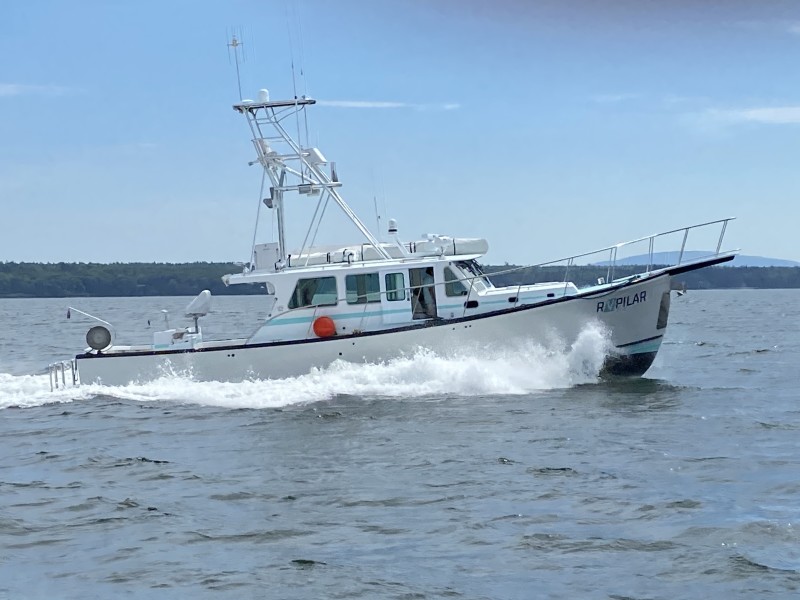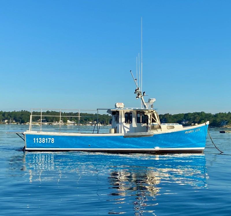 The 36-foot Robin Lyn was hauled at Farrin’s Boatshop to be repowered and overhauled. Bill Sherburne photo.