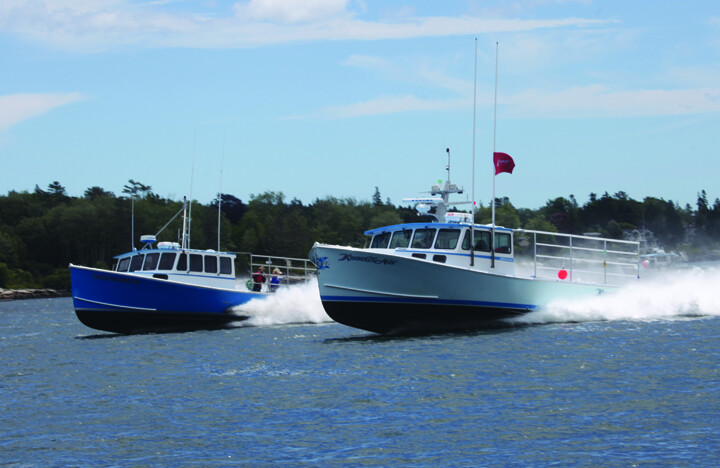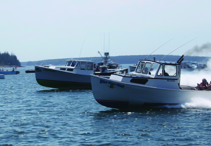 At Boothbay, Kimberly Ann (on the right), hitting 40.8 mph, barely beats Miss Madelyn in the Diesel Class M(B) race. Jon Johansen photo.