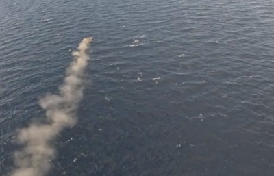 A commercial fisherman was rescued after he abandoned his burning vessel off the coast of Florida. Screengrab from U.S. Coast Guard video by Kendal Hunter