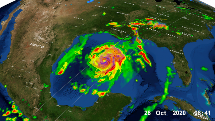Hurricane Zeta was the third major storm to hit the Gulf coast within nine weeks. NASA Goddard image.