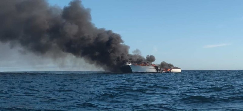 The Reel E' Bugging, a vessel featured on the National Geographic series Wicked Tuna, burned 34 miles east of Barnegat Light, N.J. Nov. 5, 2020. Coast Guard photo.