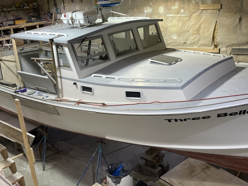 Dana’s Boatshop overhauled the Three Belles, an early Mitchell Cove 35 lobster boat built 20-something years ago. Most of the fiberglass over plywood deck was replaced and a new muffler went in. Dana’s Boatshop photo