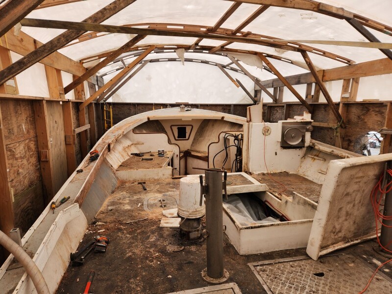 Early stages of rebuilding the Relentless at Cape Codder Marine. Cape Codder Marine photo.