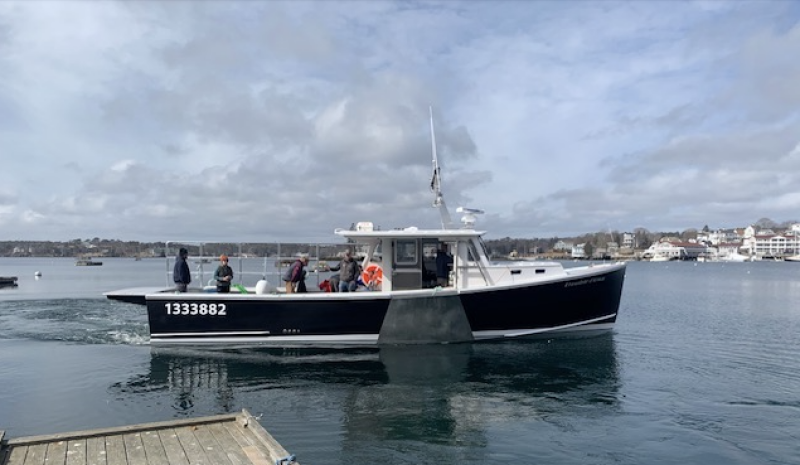 The lobster boat Double Down headed back to the dock at Samoset Boatworks after its sea trials. Samoset Boatworks photo.