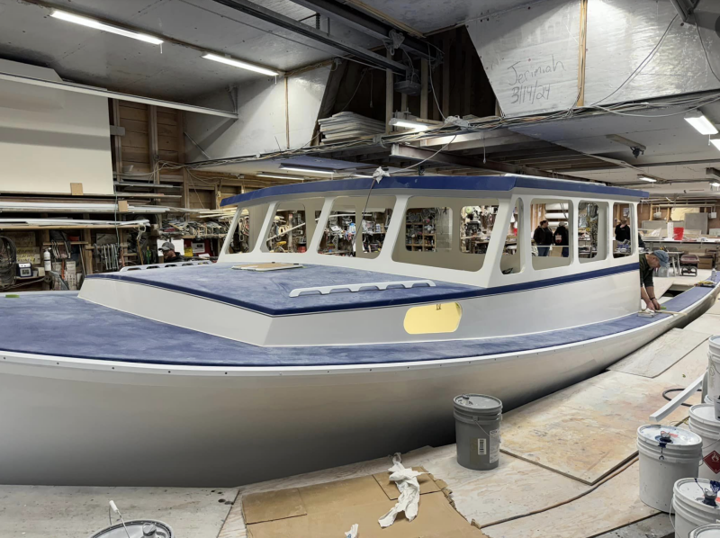 At the Little River Boat Shop, work is ongoing on the Miss Laura’s wheelhouse. Little River Boat Shop photo.