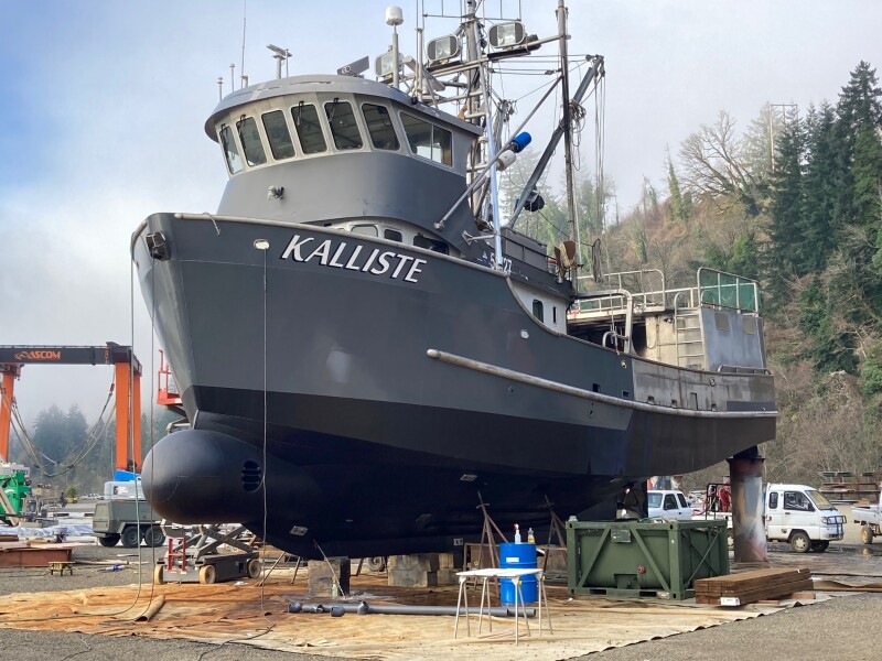The 57-foot Kalliste was sponsoned at the Port of Toledo Shipyard. Port of Toldo Shipyard photo.