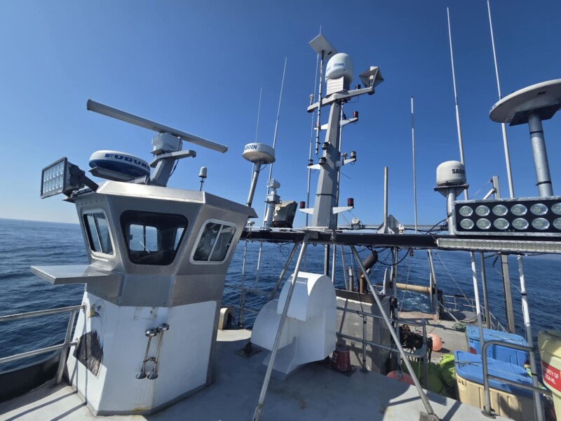 The Black Eagle uses a Furuno FCV-1900 fish finder with frequencies from 15 to 200kHz. “You need that for when you’re fishing that deep water, you have to have low frequency and high power,” says Grant Pinsent, owner of Northeast Supplies Ltd. “I sell Furuno and TimeZero,” says Pinsent. “I also do service. I’m ready to go out the door anytime anyone has a problem.” As Pinsent explains, the Furuno FCV-1900 is a chirp sounder that can be tuned down to a frequency of 28 to 30 kHz. “That’s what you need just to reach the bottom in 500 fathoms,” he says. “And you have to have the power, at least a 2kW transducer.”