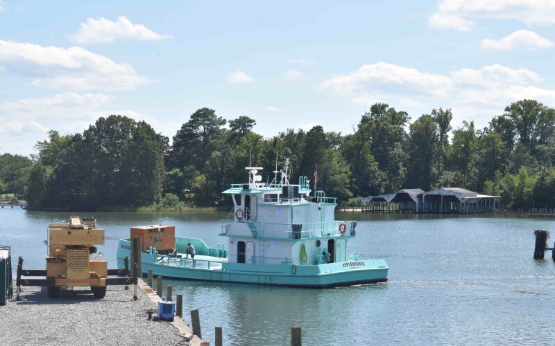 The Hopeful Harvest with its 7-foot draft was purchased from the Kellums by Omega Protein of Reedville, Va. and is being used in the Atlantic Ocean and in the deeper waters of Chesapeake Bay to haul two 20’ x 8’ aluminum skimmer boats. These boats are designed to rapidly pick up dead fish on and below the surface of the water when there is a purse net tare. The Hopeful Harvest is designed to get the skimmer boats to the fish kill sites in a timely manner and haul the dead fish back to Reedville.
