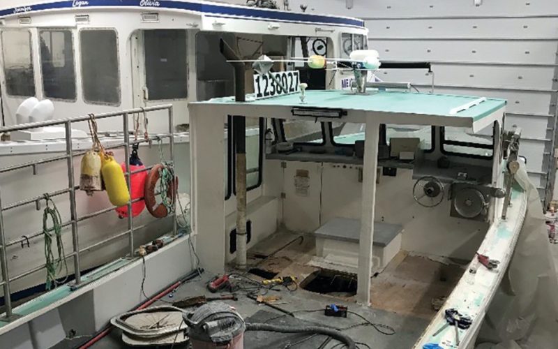 A 50-foot Dixon out of Machiasport, Maine, came in the first week in February. (It’s 45-foot Dixon with a 5-foot stern extension.) She’s getting a new layer of rubber on the deck and some minor repairs, including fixing a crack in the exhaust.