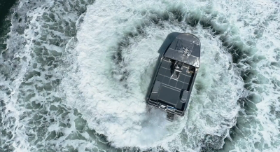 “I got a lot of comments. I felt like I was like in a movie,” says Burns. “Boats coming by, and people were taking pictures.” The Killer had been wrapped in a printed vinyl covering that made it look like a giant salmon emblazoned with the FPT logo – a novel way to promote FPT engines in the absence of trade shows during the pandemic.