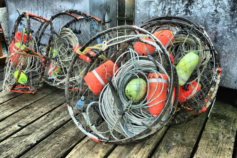 Traditional Dungeness traps were left on the dock during the ropeless gear trial from April 9 to June 30. Photo by KennStilger47