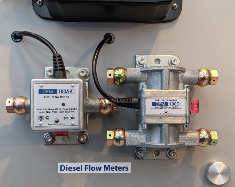 Airmar’s SmartFlex dual-chamber diesel flow meter, lower left, is the company’s newest addition to its diesel flow meters line. Photo by Airmar