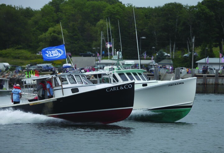 F/V Carl & Co and F/V Jacalwa head to head at the Long Island Lobster Boat Races. Photo courtesy of Jon Johansen
