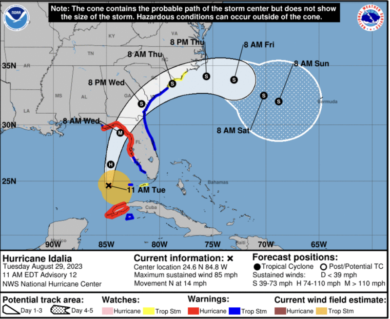 Hurricane Idalia is forecast to come ashore in Florida's Big Bend region Wednesday morning. National Hurricane Center graphic.