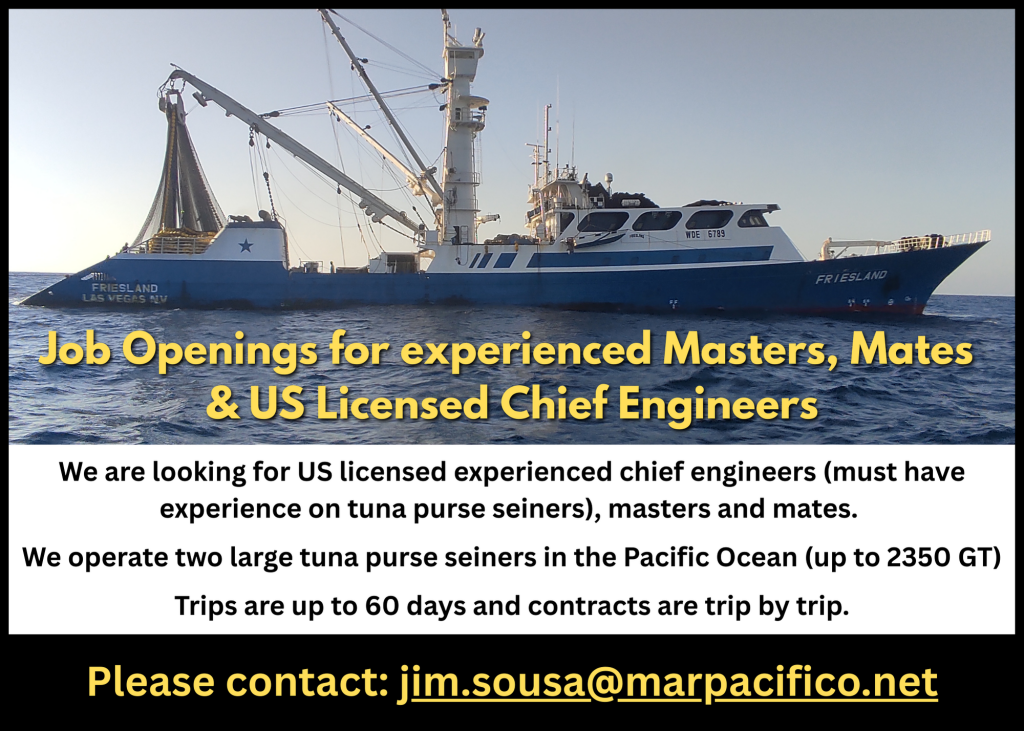 We operate two large tuna purse seiners in the Pacific Ocean (up to 2350 GT)