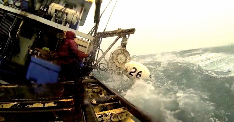 The crew of the 58-foot Stanley K. pulls cod pots in the Bering Sea. Keith Bell photo
