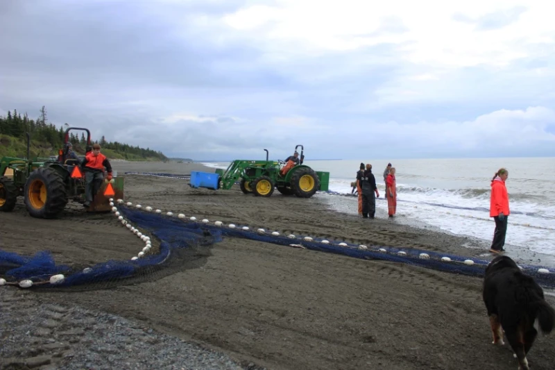 Setnetters participate in a test seine net fishery on a beach site on Thursday, July 18, 2024 near Kenai, Alaska. Photo by Ashlyn O'Hara/ KDLL