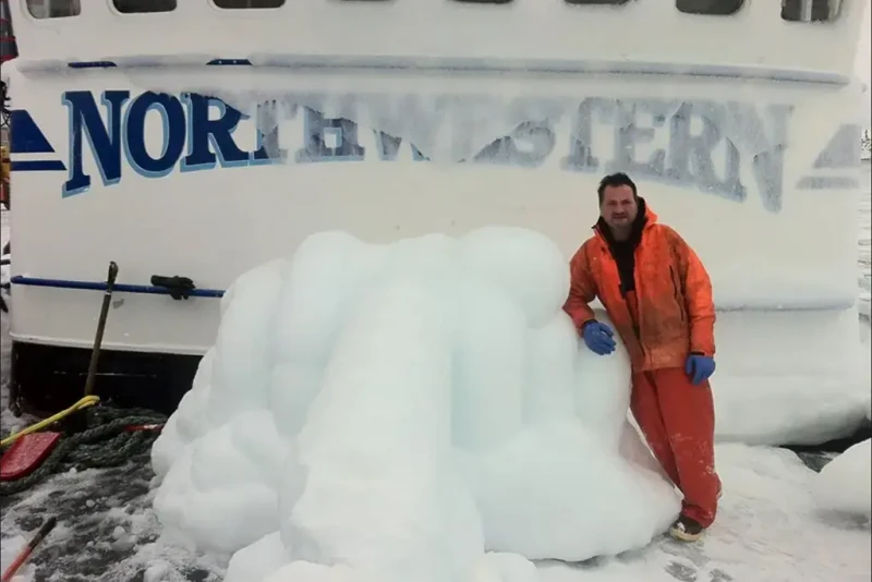 Nick Mavar Jr. in front of the F/V Northwestern, as seen on Discovery Channel's 'Deadliest Catch'. Photo courtesy of Mavar's Facebook.