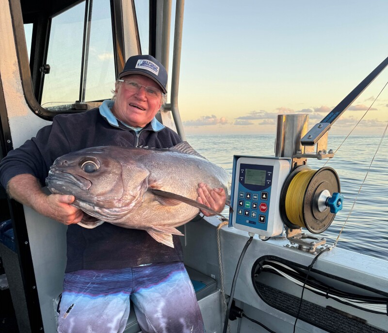 Jo Rowley has been making the Deep Drop ProFisher and is about to release a digital version, the ProFisher 1200, seen here landing a blue-eyed travella from the depths. Photo by Rowley