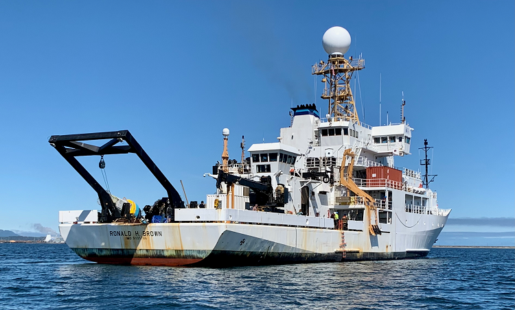 Oceanic measurements collected during a scientific cruise on NOAA ship Ronald H. Brown in mid-July confirmed that a large area of poorly oxygenated water, known as hypoxia, is growing off the coast of Washington and Oregon. NOAA photo.