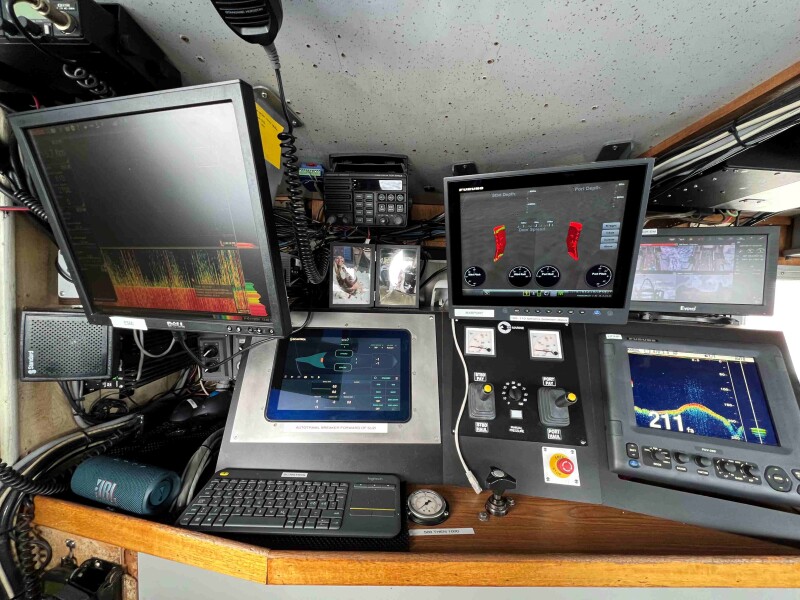 In the wheelhouse of the Western Dawn, the Scantrol monitor takes center stage. GS Marine LLC installed in October 2023, the first of the SYM7 LT system in the U.S. Photo by John Simpson