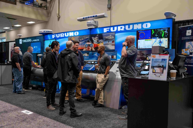 Furuno's booth at the 2023 Pacific Marine Expo in Seattle, WA. Photo by Britton Spark (Instagram: @couchchronicles)