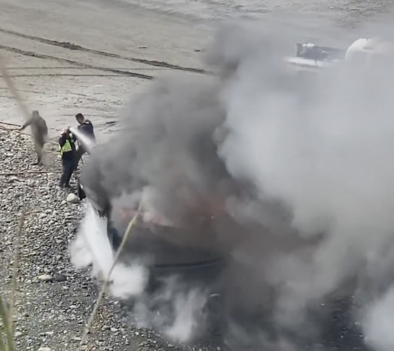 According to sources from around the bay, the captain, Mark McCutcheon of Friday Harbor, Washington, left two crewmen aboard and was on his way to King Salmon to pick up another crewman. Michelle Connor filmed ineffectual efforts to extinguish the fire on the fiercely blazing vessel. “The captain was on the bluff with us,” she said in a Facebook post.