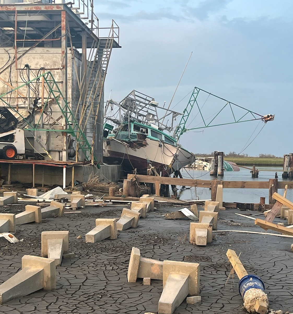With heavy damage to vessels and infrastructure, the region’s fishing industry must wait for repairs to locks and bridges across waterways. Without power docks and shrimp plants will remain idle for weeks, fishermen say.