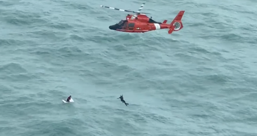 During the Coast Guard’s offshore rescue Thursday, a helicopter crew launched around 5:30 a.m. to search for the missing captain of the fishing vessel Capt. Dave.