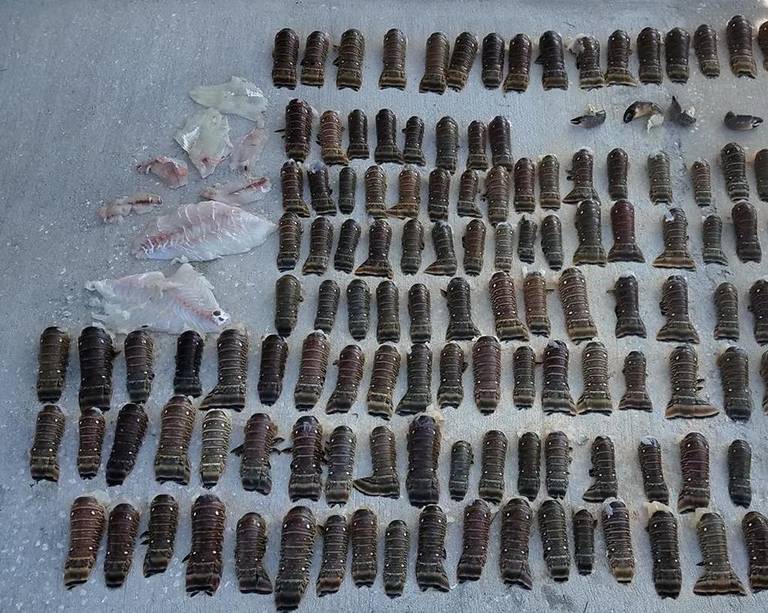 The men were pulled over in a rented boat by Florida Fish and Wildlife Conservation Commission officers near Marathon, Fla., and officers discovered a bag containing 137 out-of-season wrung spiny lobster tails — 117 of which were undersized — four out-of-season stone crab claws and eight fish fillets, according to commission spokesman Officer Bobby Dube.