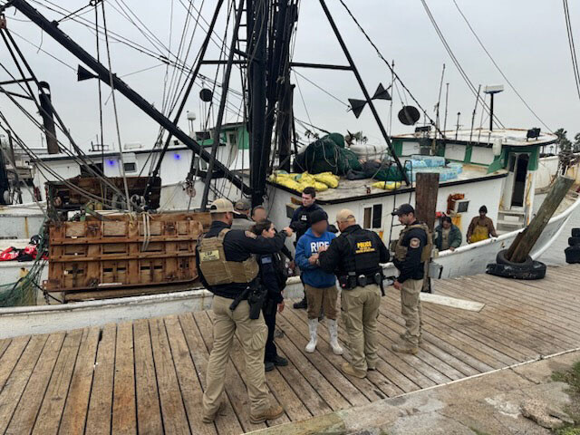 The U.S. Coast Guard detains the captain of the fishing vessel Los Nietos for an outstanding warrant and a crewmember who was identified as being a Mexican national in the U.S. illegally Feb. 15, 2025 near South Padre Island. U.S. Coast Guard photo