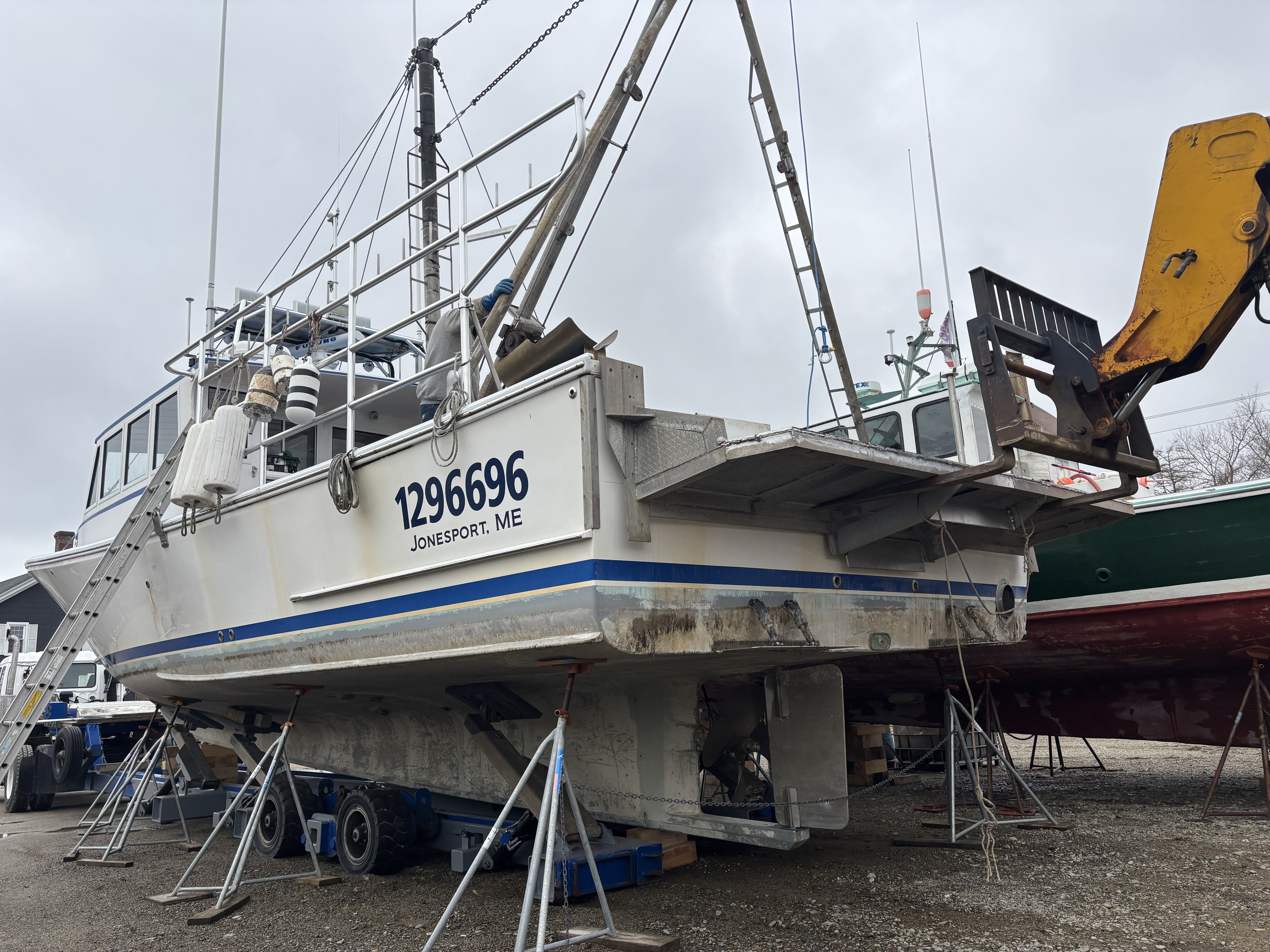 Jonesport Shipyard is geared for repairing and working on wood and fiberglass hulls. “We don’t do steel,” says Johansen. “We’re not set up for welding, and most of the steel boats are too big for our shop.”