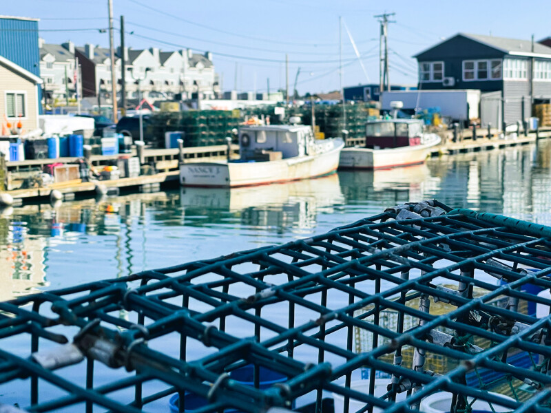 Lobster traps stacked dockside Portland, Maine Area 513. Photo Doug Stewart.