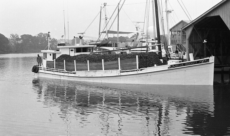 This photo of the Nellie Crockett was taken in 1984 when she was owned by James Ward of Deltaville, Va. and was being used to plant seed oysters. Larry Chowning photo.
