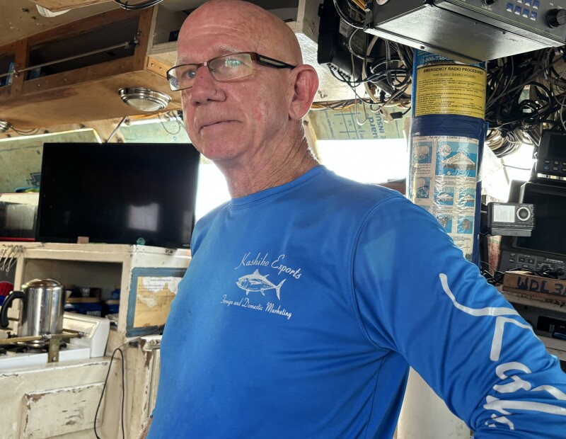 Aboard his 43-foot tuna longliner, the Provider II, Marty Scanlon, president of the Blue Water Fishermen’s Association and past National Fisherman Highliner, talks about the challenges the East Coast tuna fleet faces. Paul Molyneaux photo.