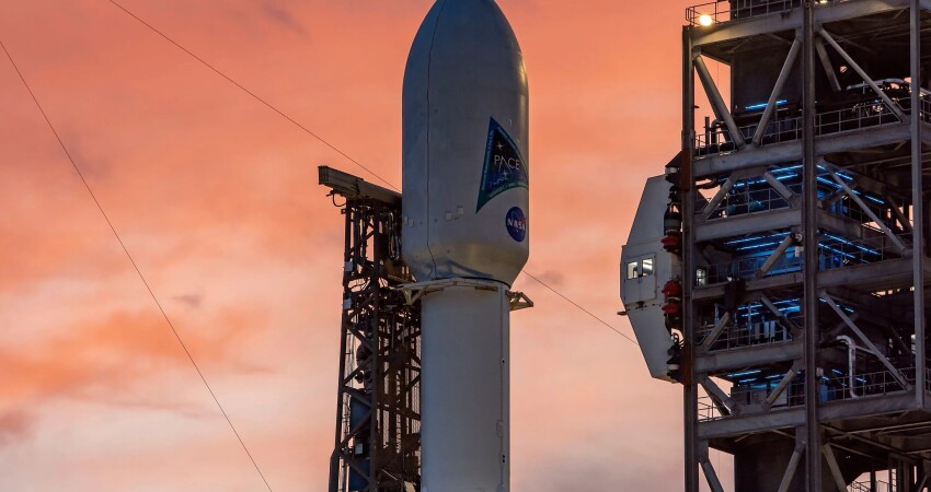 Werdell notes that NASA's PACE (Plankton, Aerosol, Cloud, ocean Ecosystem) spacecraft was deployed into orbit by SpaceX's Falcon 9 rocket, which launched on Jan. 30, 2024, from the Kennedy Space Center in Florida. “It’s a dedicated satellite with three (word), one of which is collecting color imagery from the sea surface.”