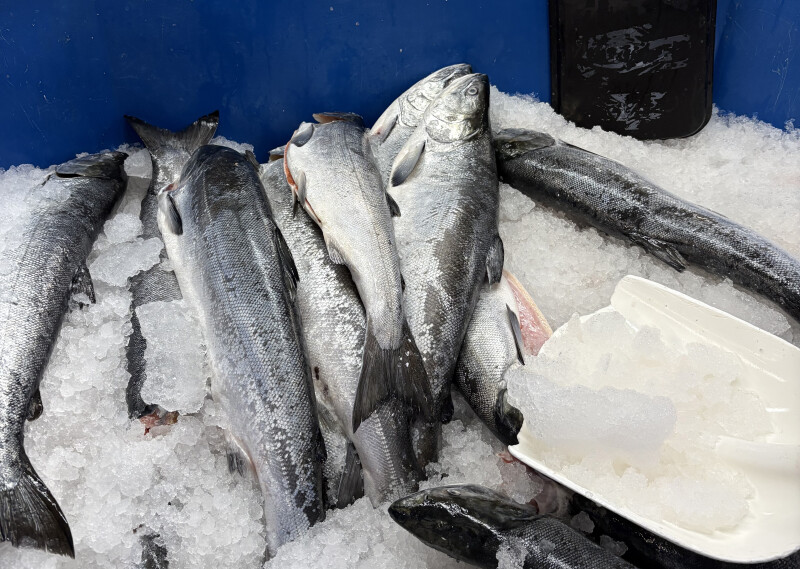 New Sagaya's seaafood department in Anchorage was advertising five pounds of fresh silver salmon fillets for $219 delivered in Alaska and the Lower 48, and headed and gutted cohos for $7.99 a pound. Margaret Bauman photo.